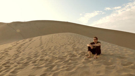 Die Oase ist eingebettet zwischen ca. 200 m hohen Sanddünen, auf denen eigentlich fast immer Menschen zu sehen sind die hinauf und hinunter kraxln.