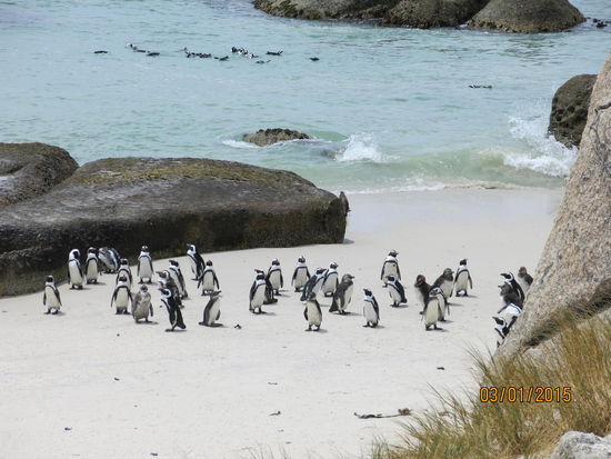Wieder recht bald in der Früh fuhren wir Tags darauf zum Kap der guten Hoffnung. Vorbei an Camps Bay, war der erste Halt Hout Bay, wo wir mit einem Boot zu Seal-Island fuhren, auf der gaaaaaaaanz viele, ziemlich stinkenden Seelöwen ihr zu Hause haben. Weiter fuhren wir entlang des table mountain national parks, wo wir immer wieder tolle Ausblicke auf Kapstadt, die Küste und verschiedenste Strände hatten. Unser nächster Besuch galt den afrikanischen Pinguinen, die sich von uns bereitwillig fotografieren ließen.