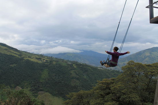 Von Riobamba aus, sind wir nach Baños, einen 2 Stunden entfernten Ort gefahren. Baños ist ein kleiner, supertouristischer Ort in den Bergen mit unendlich vielen Hostels, der fuer seine vielen Wasserfaelle bekannt ist. An unbewoelkten Tagen kann man von dort aus den Tungurahua sehen, ein ueber 5000 m hohen immer noch aktiven Vulkan, der das letzte Mal vor 2 Monaten ausgebrochen ist. In Baños war es leider immer bewoelkt, weshalb wir den Vulkan nur bei einer Wanderung zum Casa de Arbol sehen konnten. Dort konnte man auf einer Schaukel quasi ueber das Tal "fliegen"!