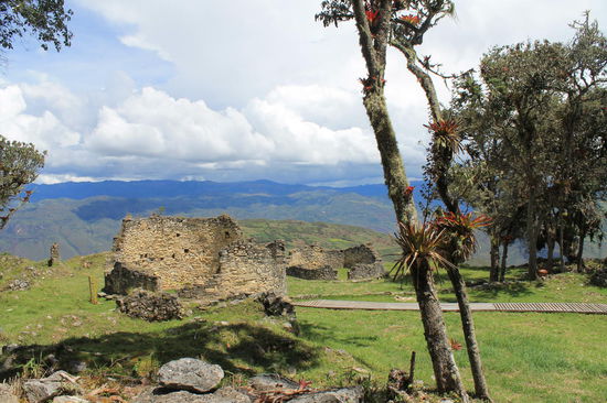 Die Stadt Kuélap war von einer 20 m hohen Mauer umgeben und der Elite vorbehalten. Es gab dort einen Sonnentempel und verschiedene Wohnhaeuser, die ueber Generationen hinweg oft ueber alte Haeuser gebaut worden sind. Heute stehen nur noch die Ruinen dieser Haeuser sowie eine Huette, die orginialgetreu nachgebaut wurde.