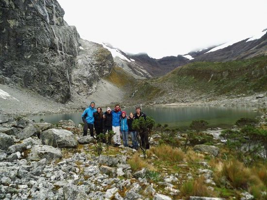 Die andere Wanderung ging zur beruehmten Lagune 69, die nur mit einer gebuchten Tour zu erreichen ist. Wir waren mit Jan und Julius aus unserem Hostel sowie mit 9 weiteren Touris ohne Guide und ohne Karte unterwegs, da der Weg angeblich ganz einfach zu finden sei. Da wussten wir noch nicht, dass es auch keine Schilder gibt. Letztendlich haben nur 4 Leute aus unserer Gruppe die Lagune 69 dank GPS-System gefunden. Wir sind dagegen mit der restlichen Gruppe den falschen Berg hochgewandert, mussten deswegen 2 Wasserfaelle ueberqueren und hatten eine hoehenkranke Koreanerin dabei, die sich staendig uebergeben hat und kreidebleich war. Am Ende sind wir dann bei der falschen Lagune gelandet und 2 Stunden spaeter als ausgemacht beim Bus angekommen. Die Lagune, die wir gefunden haben, war aber trotzdem schoen und man hatte einen tollen Blick auf die Gletscher hinter der Lagune.