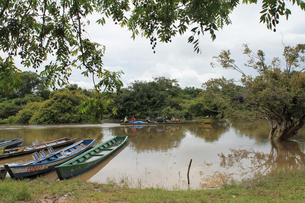 Die Bootsfahrt zu unserer Lodge war schon ziemlich beeindruckend, weil wir sehr viele Voegel, u.a. Paradiesvoegel und Kormorane gesehen haben, Kaimane und Alligatoren, rosa-graue Suesswasserdelphine, kleine Wasserschildkroeten und kleine Affen
