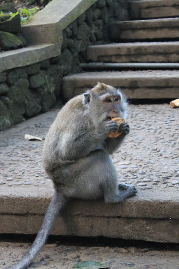 In unseren Tagen sind wir in den Reisfeldern spazieren gegangen, haben uns an etwas abenteuerlichen Lonely Planet Walks quer durch Privatgelaende versucht (in der Beschreibung wurde natuerlich nicht erwaehnt, dass man mehrmals ueber Privatzaeune klettern muss ), haben uns die Tempelanlagen Gunung Kawi und Pura Tirta Empul (der fuer seine heiligen Quellen, in denen man baden kann, bekannt ist) angeschaut, waren bei einem traditionellen balinesischen Legong Dance, der fuer seine Bewegungen mit den Haenden und Augen bekannt ist und waren im Sacred Monkey Forest. Dort laufen eine Vielzahl an balinesischen long-tailed Macaques frei herum. Es gibt verschiedene Tempel in dem Wald und einen Friedhof, auf dem diejenigen Personen begraben werden, die sich eine eigene Einaescherung nicht leisten koennen und auf Masseneinaescherungen warten.