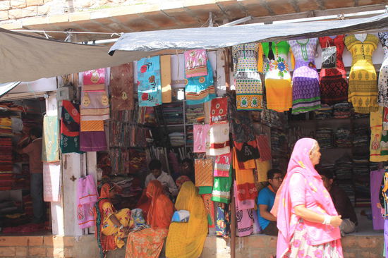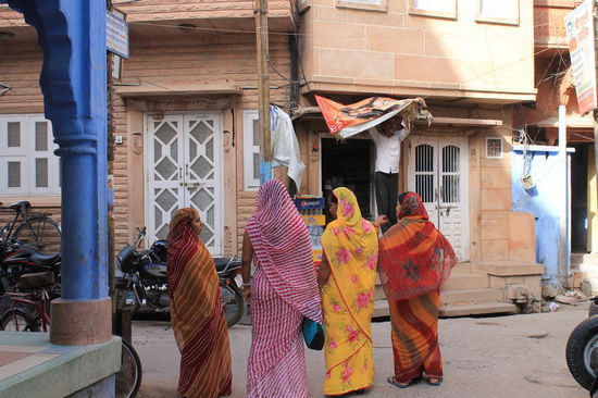 Nach unserer Kamelsafari sind wir direkt weiter nach Jodhpur gefahren. Dieses Mal nicht mit dem Zug sondern mit dem Bus, der aber erstaunlich bequem war. In den Bussen in Indien gibt es nicht nur normale Sitze sondern auf der einen Seite des Busses sowie ueberhalb der Sitze eine Art Kabinen, in denen man waehrend der Fahrt schlafen kann und die daher ein bisschen mehr kosten als die normalen Sitzplaetze. Waehrend der Fahrt sind wir an einigen Wuestenorten vorbei gefahren und sind dann nach 5 Stunden in der „blauen Stadt“ Jodhpur angekommen. In Jodhpur sind ein Grossteil der Haeuser in der Altstadt blau angestrichen, da die Farbe urspruenglich die Farbe der Brahmanen-Kaste (Angehoerige der obersten Kaste im Hinduismus) symbolisierte und angeblich gegen Mosquitos schuetzt, weshalb heute nicht mehr nur die Brahmanen-Haeuser blau angestrichen sind, sondern auch andere Haeuser in der Altstadt.