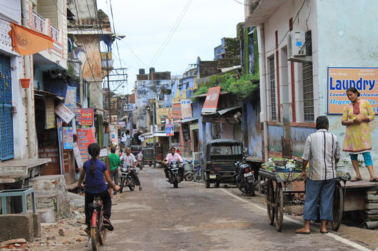 Die erste Nacht haben wir im Elephant Guesthouse verbracht, dessen Gebaeude frueher mal Elefantenstaelle des Palastes waren. Da in unserem Zimmer allerdings ueberall riesige Ameisen und andere Tiere herumgekrabbelt sind und das Bad kein Wasser hatte, haben wir das Hostel nach der ersten Nacht gewechselt und hatten in einem alten Haveli (alte indische Villen) eines der schoensten Zimmer unserer ganzen Reise mit riesigen Fenstern und Sitznischen mit Blick auf den See und die Berge fuer nur 3,20 Euro die Nacht pro Person. Das einzige Manko an dem Zimmer war die laute Umgehungsstrasse auf der anderen Seite des Sees, auf der vor allem nachts LKWs mit lauter Bollywoodmusik entlang gefahren sind.