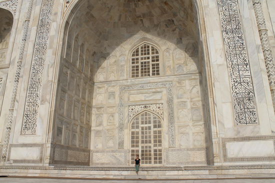 Jetzt ist unsere Reise wirklich fast um und bevor es wieder zurueck nach Delhi geht, sind wir noch nach Agra gefahren um uns den Taj Mahal anzuschauen. Was wir in den 2 Tagen dann auch ausgiebig getan haben Zuerst von der Dachterrasse des Saniya Palace Hotels am Southgate bei Sonnenuntergang, am naechsten Morgen bei Sonnenaufgang auf dem Gelaende direkt um den Taj Mahal herum und dann nochmal abends zum zweiten Sonnenuntergang im Garten Mehtab Bagh, der gegenueber des Taj Mahals auf der anderen Seite des Yamuna-River liegt.
