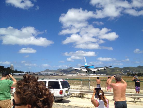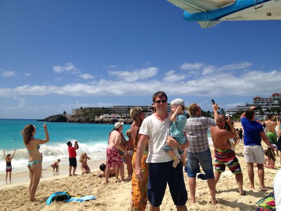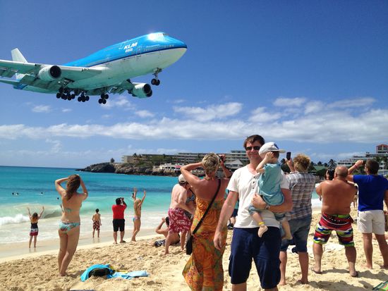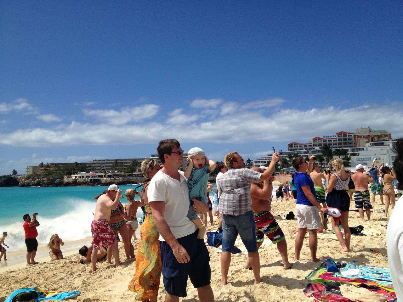 Wir machen uns mit dem Taxis auf den Weg zu einem besonders erwähnten Strand und baden in der karibischen Brandung.Danach geht es mit dem Inseltaxi nach Marigot der französischen Hauptstadt und wir spazieren über den kleinen Marktplatz. Dann aber schnell weiter zum berühmten Maho Beach der sich in unmittelbarer Nähe zum Landeplatz des örtlichen Flugplatzes befindet. Hier fliegen auch große Jumbo Jets direkt über die Köpfe der Strand Besucher um dann ca. 100 m weiter zu landen.Ich habe natürlich bedenken ob dieser Ort Kinder tauglich sei, werde aber überstimmt. Und tatsächlich erleben wir wie ein riesiger Jumbo Jet der KLM am Horizont als Stecknadel auftaucht, in sekundenschnelle auf uns zurast und mit Krach und Sturm über unsere Köpfe donnert um dann zu landen. Wahnsinn!