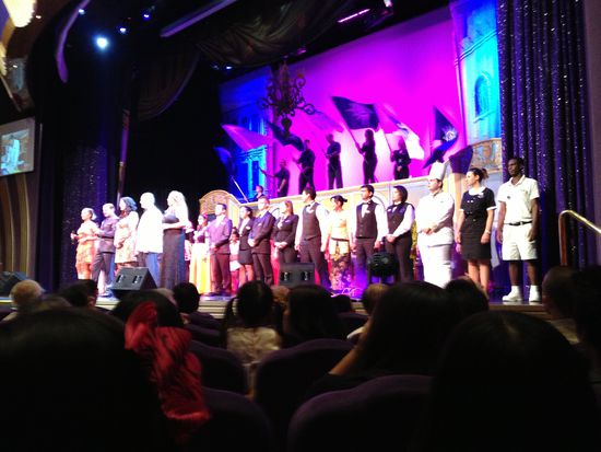 Ach ja- das Gala Dinner wäre bestimmt mal toll gewesen, aber nachdem wir es am ersten Abend gewagt hatten in dem übervollen trubellauten Saal an unserem Tisch Platz zu nehmen, mussten wir festellen, dass unser Sohn schon die Tischdeko abgeräumt hatte bevor wir überhaupt unsere Getränke bestellt hatten. Nun begann er lautstark alle umliegenden Tischnachbarn zu begrüßen, um dann im nächsten Moment die kunstvolle Wanddeko zu entdecken... Lange Rede kurze Sinn , wir haben nie erfahren wie die 4 Gänge mundeten aber dafür hatten wir jede Menge Spass im Bord Theater und das Essen in den Büffet Restaurants war auch durchaus okay.