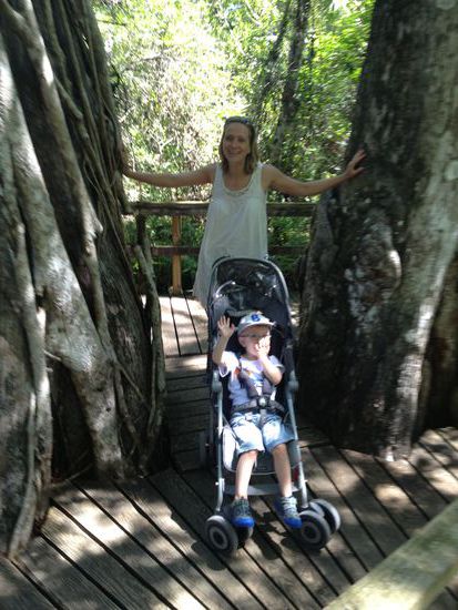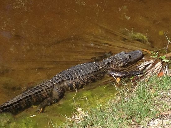 ,Nach einem ausgiebigen amerikanischen Frühstück mit Pancakes und Eiern begeben wir uns auf unseren ersten Tagesausflug den Tamiami Trail um mal ein paar echte Alligatoren zu sehen. Der Tamiami Trail auch Route 41, verbindet Naples am Golf von Mexiko mit Miami und führt direkt durch die Everglades durch . Als Kind der Achtziger erwarte ich natürlich "Miami Vice" ähnliche Zustände und bin zunächst enttäuscht nicht unmittelbar von Sumpflandschaft umgeben zu sein .Wie ich erfahre gibt es jedoch in den Everglades eine nasse Periode von Mai - November, und da unsere Reisezeit im März war, sehen wir zwar von der Strasse aus Sumpflandschaft, jedoch auch viele trockene Kanäle. Wir halten am Big Cypress Bend Boardwalk im Fakahatchee Reservat. Dieser Boradwalk führt einen auf einer Art Holz Bürgersteig durch den Sumpf. Umgeben von riesigen uralten Bäumen kommt man sich ziemlich klein vor und die Bekanntschaft mit den kleinen und größeren Alligatoren lässt auch nicht lange auf sich warten.