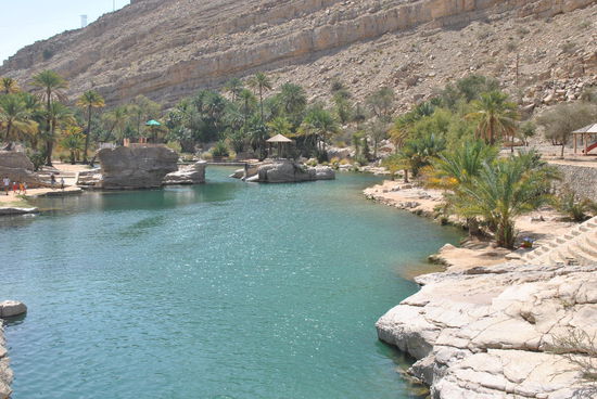 Unsere Zeit reicht hier nur für eine schnelle Besichtigung und ein paar Fotos des Geländes. Schlimm ist das nicht, da es hier zwar wunderschön, aber doch so touristisch ist, dass es dem Wohlfühl-Vergleich mit dem gestrigen Bad im Wadi al Shab nicht standhalten kann.