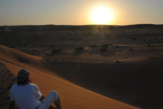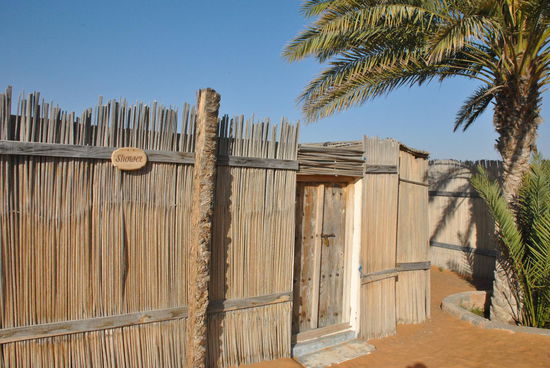 Wir steigen zum Führer ins Auto, die anderen Touristen fahren mit ihren Jeeps hinterher, nachdem Luft aus den Reifen gelassen wurde. Ab jetzt endet der Asphalt. Nach ca. 14 km offroad liegt das Camp vor uns: genial: Basthütten (Barasti), kein Strom, Wasser outdoor - ich beschreibe hier nicht mehr, ich werde Bilder statt Worten sprechen lassen ...