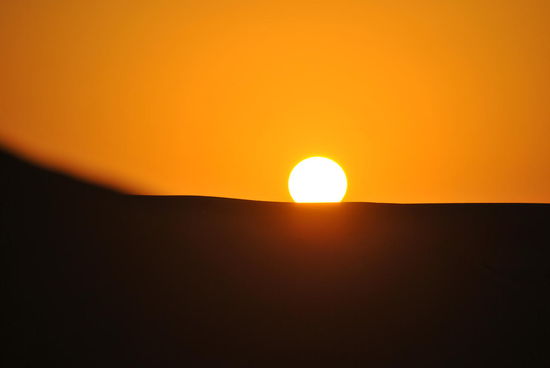 Unsere Truppe ist nicht sehr groß: 18 Leute: Schweizer, Franzosen, Deutsche und ein koreanisches Paar. Zum Sonnenuntergang fahren alle im Convoi mit den Jeeps auf erhöhte Sanddünen in der Nähe. Frank und ich hätten zwar mitfahren können, ziehen jedoch eine Erklimmung zu Fuß vor und wählen die andere Richtung - Sanddünen gibt es hier genug. Der Ausblick und die absolute Ruhe sind gigantisch. Die Sonne lässt den
