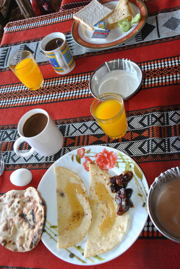 Während alles vor sich hinkocht, setzt Sultan sich zu uns und beantwortet - so gut er mit wenig Englisch kann - geduldig unsere vielen Fragen. Ein interessantes Thema für dieses Aufeinandertreffen von arabischer und westlicher Welt: hier heiratet ein Mann "nur" vier Frauen. Diese Info entlockt Frank ein erstauntes: "und wie machen die das, ich find' nicht mal EINE....!?" Mich interessiert, ob die dann zusammen bleiben, bis ans Lebensende. Die Antwort: "ja, wenn sie was taugen, können sie bleiben, sonst müssen halt mal welche gehen und man(n) nimmt sich neue".... So langsam überlegt Frank, ob er einen dauerhaften Ortswechsel anstreben soll Ich versuche Sultan zu erklären, dass in Deutschland ein Mann nur eine Frau heiratet und wenn die nicht "funktioniert", dann ist es oft sehr teuer, sie wieder los zu werden. Sultan schüttelt entsetzt den Kopf.