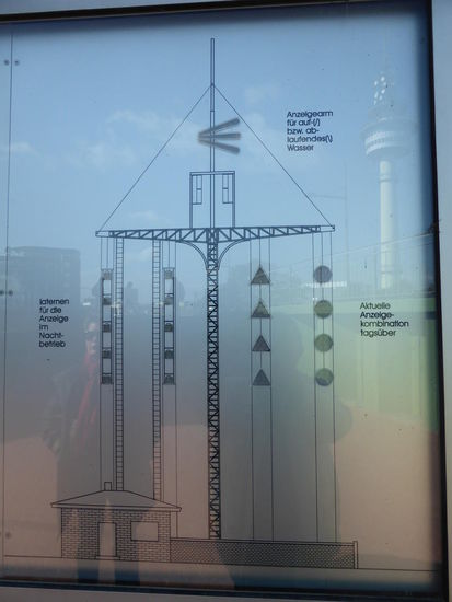 Einzigartiges maritimes Wahrzeichen, Baujahr 1903, das bis 1973 der Schifffahrt den Wasserstand über Seekartennull (SKN * Niedrigwasser in der Weser) anzeigte. Jeder Ball zeigt 1,0 m Wasserhöhe über SKN, jeder Kegel zeigt 20 cm Wasserhöhe an. Auf der linken Seite des insgesamt 32 m hohen Stahlmastes werden zur Nachtzeit entsprechende Lichtsignale gesetzt. Der rote Zeiger an der Spitze weist auf die Tidephase hin: Stellung nach oben: auflaufendes Wasser, nach unten: ablaufendes Wasser, waagerecht Hoch- oder Niedrigwasser. 2014 wurde der unter Denkmalschutz stehende Mast für das Deutsche Schiffahrtsmuseum restauriert