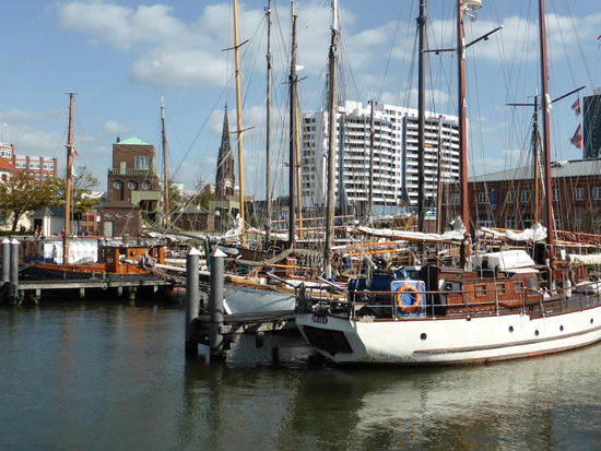 Im Neuen Hafen liegen 'kleinere' Yachten, aber auch ältere Bootsvertreter.