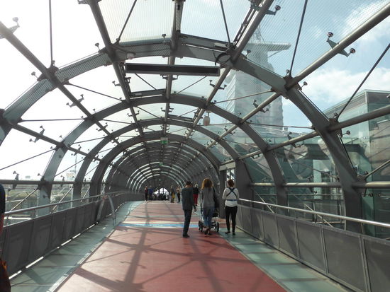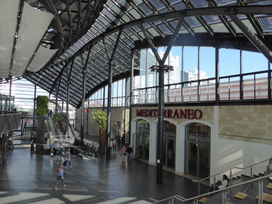 Die Kirche ist mal wieder geschlossen und wir treten den Rückweg durch das Einklaufscenter an, das mit einer gläserenen Brücke über die Columbusstr. mit dem Mediterraneo-Komplex verbunden ist.