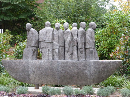 The sculptor and architect Bernhard Hoetger (1874-1949) moued to Worpswede, inspired by the painter Paula Modersohn-Becker. Beginning in the mid-1920s, he created the ensemble-»Kaffee Worpswede«, »Große Kunstschau Worpswede« and »Logierhaus« which with the Sculpture Park (including the »Bonze des Humors«) is now owned by the »County of Osterholz Cultural Foundation«. The building, now known as the »Philine-Vogeler-Haus«, was built for a weauerin 1928. Today it houses the Worpswede Tourist Office. In front of the »Worpsweder Kunsthalle« is Hoetger's sculpture »Sent M'Ahesa« which completes the ensemble.