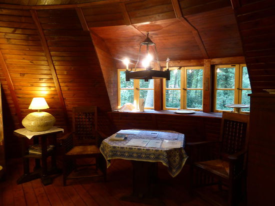 Man betritte den Rundbau durch eine kleine Diele und kann entweder links herum (Küche-Bad-Schlafzimmer-Wohnzimmer) oder rechts herum laufen. Dann natürlich in der umgekehrten Reihenfolge.