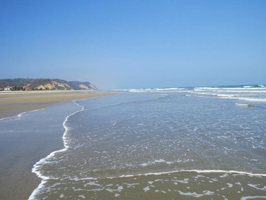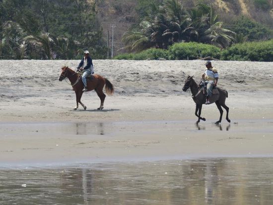 Am nächsten Morgen siehe da, ein Stücken blauer Himmel und 2 Stunden später strahlt die Sonne um die Wetter. Der Strand hier ist anders. Ebbe und Flut ist sehr ausgeprägt und der ellenlange Sandstrand lädt zum Spazieren gehen aber auch zum schwimmen ein. So ruhig wie der Reiseführer Canoa beschrieben hat, ist es allerdings nicht. Es tummeln sich sehr viele Ecuadorianische Familien am Strand. Surfer wie es beschrieben war, sehe ich gar keine. Die nächsten vier Tage verbringe ich mit Sonnenbaden, Strandspaziergängen, super leckerem Essen aus dem Meer und tollen Sonnenuntergängen und ach ja, nix tun. Ich könnte mich daran gewöhnen, wenn nicht das nächste Ziel Namens Mindo warten würde.