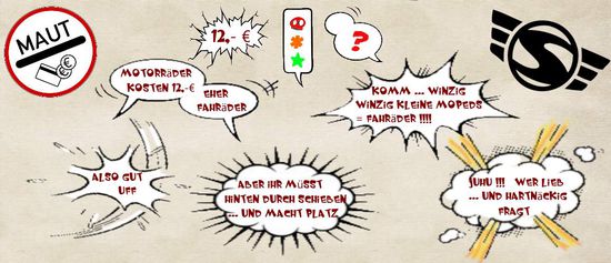 Ich wusste das der Wegezoll sich im 2-stelligen Bereich befindet, behielt es aber morgens für mich. Oli wäre sonnst nie mit gefahren.