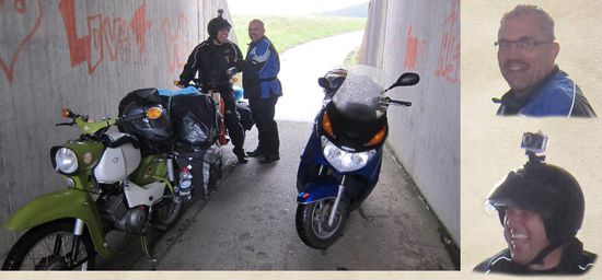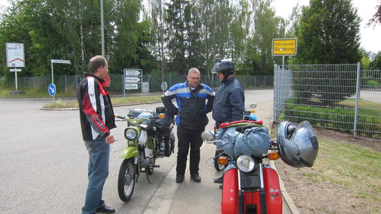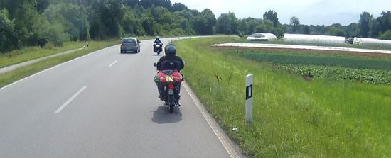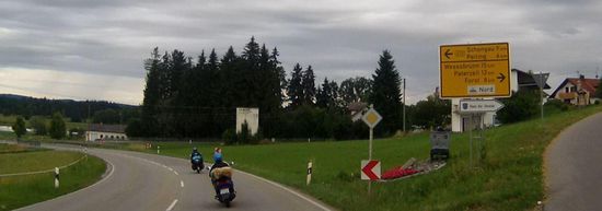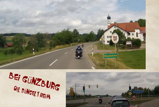 Kaum war Günzburg angeschildert, ließ Oli 0,005 Liter/Km mehr Sprit durch seinen Vergaser strömen. Er dängelte voraus und Wene machte auf rote Laterne.