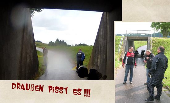 Nun ließ langsam der Regen nach, aber wenn man so ne 1/4 Stunden dumm rum steht und nur Blödsinn quatscht meldet sich die Blase.