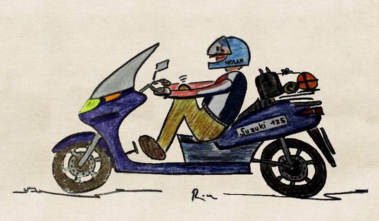 Da er seinen Kisten nun nicht mehr traute und "mal was richtiges Fahren wollte" hatte er aufgerüstet. Ne eigentlich hat er seinem ex Friseur die Suzuki 125 billigst abgeschwatzt.