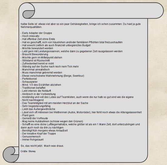 Über sich selber zu schreiben ist etwas kritisch. Daher habe ich Stoney die einmalige Chance gegeben mal so ein paar Eigenheiten über mich zu schreiben.