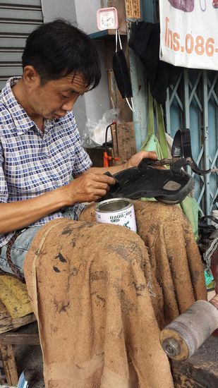 Unsere Teva Sandalen stinken bis zum Himmel. Um das Problem zu lösen, lassen wir Ledersohlen einkleben.