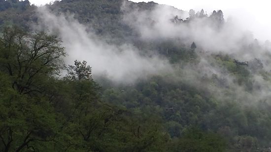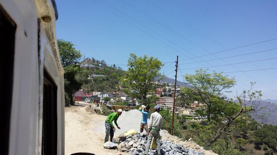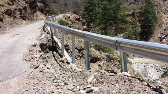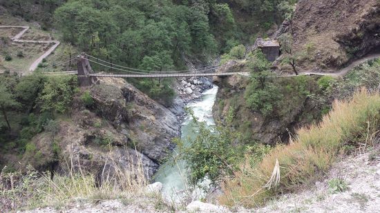 Die Strasse führt ubers Gebirge duch viele Baustellen mit steilen Abgründen zum Flußtal. Der letzte Monsunregen hatte sehr viel zerstört.