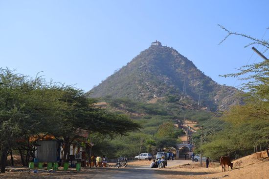 Da im Umland ein recht hoher Berg mit weitem Ausblick auf Pushkar und einem Tempel der verstorbenen Frau des Brahms liegt, machte ich mich schon früh vor der Mittagshitze auf zur Erklimmung (so schlimm war es aber nicht). Der Aufstieg ging erst seicht, dann steil über Treppen bis zum Tempel. In 25min. war ich oben. Das Denkmal war den Weg nicht wert, aber die Aussicht war grandios. 6 min. Aufenthalt. Da oben zog es wie Hechtsuppe und ich war geschwitzt und ab ging es wieder auf den Rückweg. Als ich mich immer mehr Pushkar näherte, hatte ich den ersten dieser glücklichen und innersten Momente.