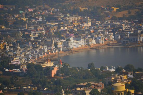 Ich weiß nicht an was es liegt, ob die Pushkaner einfach ordentlicher sind als der Rest, aber hier ist es deutlich aufgeräumter und sauberer als in den bisherigen Städten die ich besucht habe. Aber vielleicht machen sie es ja auch für die vielen Europäer, weil sie wissen, dass wir uns lieber im sauberen niederlassen, als im Müllhaufen zu sitzen. Obwohl diese Europäertatsache wiederum einen erhöhte Frequenz an Bettlern in Pushkar mit sich bringt.