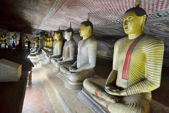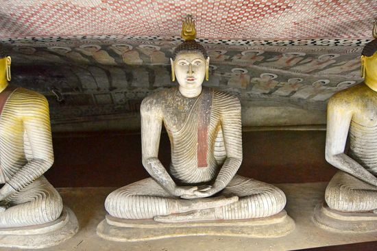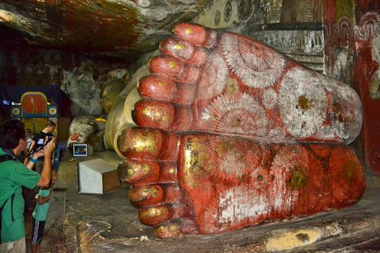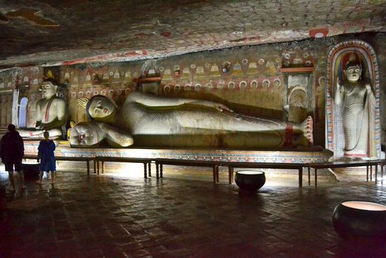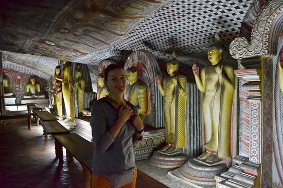Der Anzahl der dort aus Stein gehauenen Buddha-Statuen nach könnte man annehmen, dass jeder Bewohner in Dambulla dort seinen eigenen Buddha stehen hat. Es war beeindruckend, mit welcher Anmut und welcher Würde ein Buddha neben dem nächsten stand. Still und kraftvoll. In vielen der großen Steinhände lagen Lotusblüten, deren lieblicher Duft sich in jeder Höhle ausbreitete.