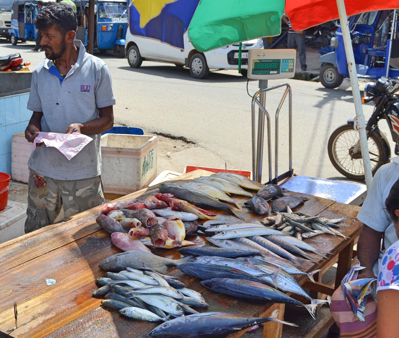 Kulinarisch war für uns fast jeden Tag Weihnachten, denn die singalesische Küche und der viele Fisch sind wie ein Festtagsschmaus. Entlang unseres 3 km langen Strandes reihten sich mit kurzen Abständen verschiedenartige Restaurants: Strandhütten, Hotels, Bars, Cabanas. Wir probierten uns der Reihe nach durch. Es war ein Genuss! Da die Preisspanne am Ende auf der Gesamtrechnung nicht mal eine Differenz von 5 Euro zwischen den einzelnen Lokalen ausmachte, kann man getrost alle empfehlen.