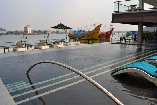 Danach ging es auf den müllüberladenen Strand von Kochin Fort und dann weiter zur St. Francis Church mit den Gebeinen von Vasco Da Gama. Am späten Nachmittag machten wir uns mit der Fähre auf den Rückweg nach Ernakulam (Stadtteil von Kochin), um von dort mit dem Bus 70km gen Süden nach Alappuzha (früher Alleppey) zu fahren. Von dort sollte es am nächsten Tag in die Backwaters gehen.