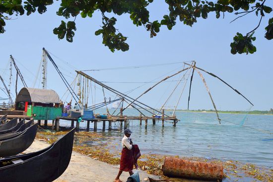 Da unsere indischen Hotelmitbewohner um 07:15 Uhr meinten es sei eine gute Zeit um im Innenhof unserer Anlage Federball zu spielen, wurde wir unfreiwillig früh unter Jubelschreien der Spieler aus dem Schlaf gerissen. Egal... so ging es wenigstens schon früh auf Sightseeingtour nach Kochin Fort und den Chinesischen Fischernetzen.