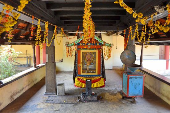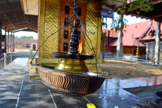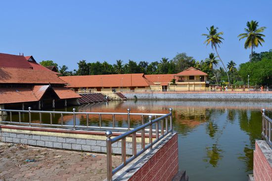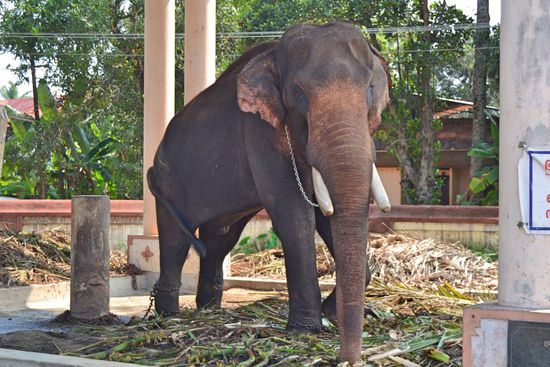 Nach einem Sprung ins Meer ging es bei uns weiter in den 15 km südlichen Ambalapuzha Sree Krishna Tempel. Die Anlage an sich war ganz schön, aber traurig war der angekettete Elefantenbulle, zu dessen Ehren der Tempel gebaut wurde.