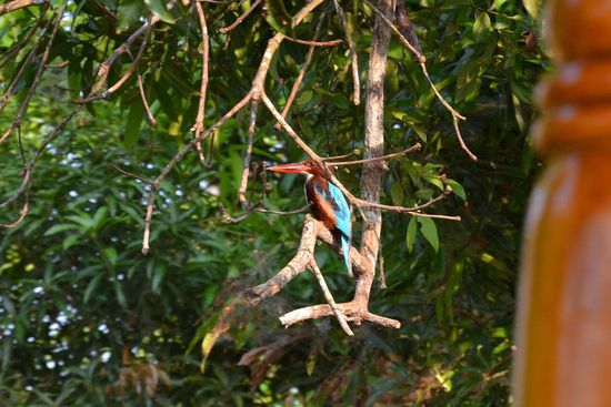 Um 15:00 Uhr startete unsere kleine dreistündige Backwatertour. Es war ein Traum, wir hatten das 20 Personenboot für uns alleine und liefen mit ordentlich Hunger das nächste Fischrestaurant an. Auf Bananenplättern servierter Reis mit verschiedenen Soßen und einem kross angebratenen Fisch, brachte unserer Geschmacksnerven zum Salto schlagen, so lecker war das Essen.