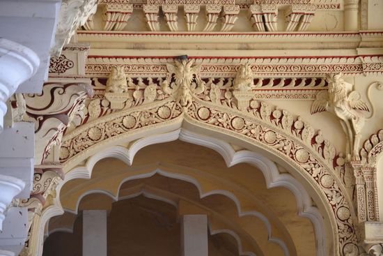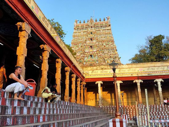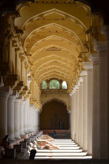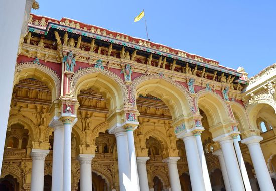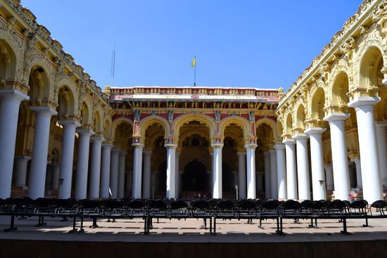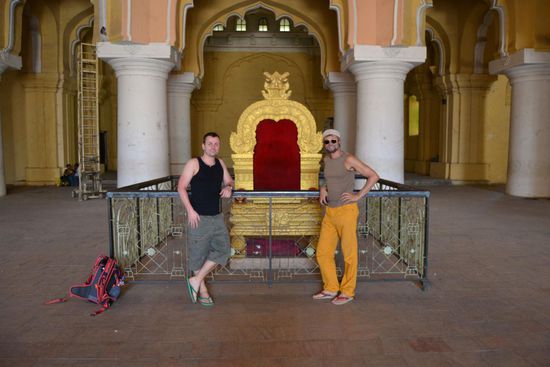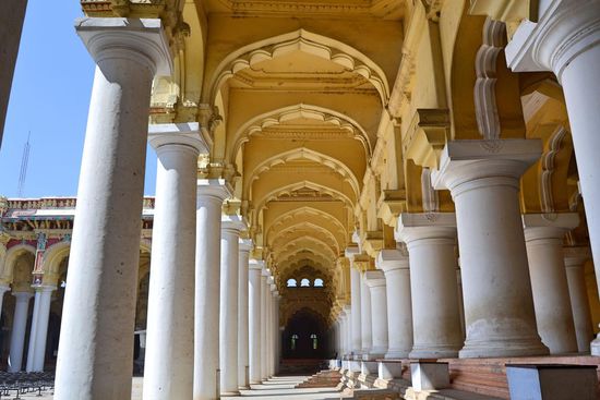 Nach den gestrigen Abenteuern und der langen Fahrt, machten wir uns am späten Morgen auf zum Tirumalai Nayak Palast um den Indio-islamischen Baustil und seine imposanten Überbleibsel zu bewundern. Mit seinen riesigen weißen Säulen und dem schönen Innenhof ist er auf jeden Fall einen Besuch wert.