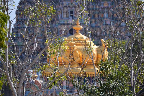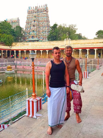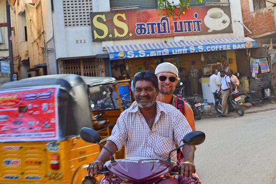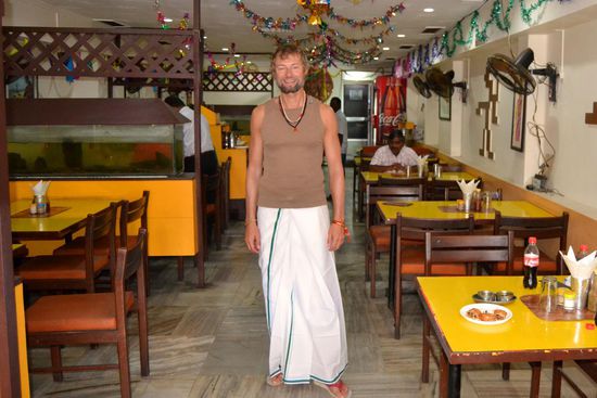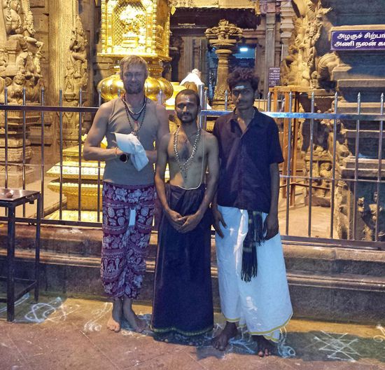 Madurai die Hochburg der Tamilen. Die Männer mit schwarzen Sarongs und Oberkörper frei und darüber hinaus ein Menschenschlag der immer schwer mit Ketten behangen ist. So zogen wir in unserer integrativen Art der Bevölkerung gleich zu kommen aus, um ein paar Ketten zu kaufen und uns ebenso damit zu schmücken. Man hat uns fast nicht mehr erkannt.