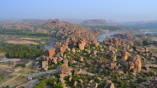 Heute sind alle Tempel zum größten Teil zerstört und da wo einst die königlichen Paläste standen, befinden sich ärmliche Hütten. Aus der ruhmreichen Weltstadt, bleibt heute nur das 26 qkm große, mit Tempel, Statuen, archaisch anmutenden Granitfelsen und grünen Oasen gespickte Gelände und das kleine unscheinbare Dorf Hampi.