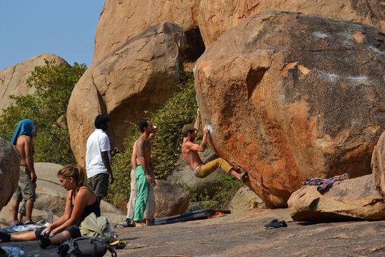 Am ersten Tag erkundeten wir alle Tempel und Steinstatuen zu Fuß. Am zweiten ging es in den südlicheren Königlichen Bezirk mit ein paar guten MTB´s. Am Nachmittag sind wir auf die nördliche Seite von Hampi in eine kleine Cabana am Fluss gezogen, in der es sehr chillig war. Am dritten Tag habe ich in den frühen Morgenstunden den Boulderern beim Felsklettern zugeschaut und am Vormittag ging es mit einem ausgeliehenen Roller über 30km durch die Gegend. In Hampi allgemein war alles sehr entspannt, was mit Sicherheit mit am hohen Drogenkonsum lag, denn wir hatten oft den Eindruck die einzigen zu sein die nicht stoned sind. Aber so ist das eben in so kleinen Hippieenklaven.