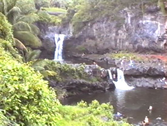 Nach langem Trail geht es über Hana noch in den unteren Teil des Haleakala-NP, wo die sieben Oje-Pools auch wieder überlaufen sind. Trotzdem spektakulär.
