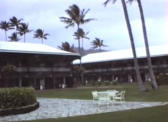 Hier in Lihue ist dann am Alamo Schalter der Teufel los. Es dauert fast eine Stunde bis wir wieder einen Caddi (natürlich rot) besteigen können. Ein nettes Ehepaar unterhält uns bei der Wartezeit. Als erstes fahren wir Safari Helicopter an und buchen für mich einen Flug am Ostermontag, 11.35 Uhr rund um die Insel. Dann machen wir bei Hilo Hatties einen kurzen Stop. Ulrike kauft sich einen Muu - schön bunt. Gegen 18.00 Uhr erreichen wir das Kauai Sands, es liegt toll direkt am brausenden Strand, mit hohen Gebäuden um einen Pool, mit einer gepflegten Anlage mit Rasen und hohen Palmen.