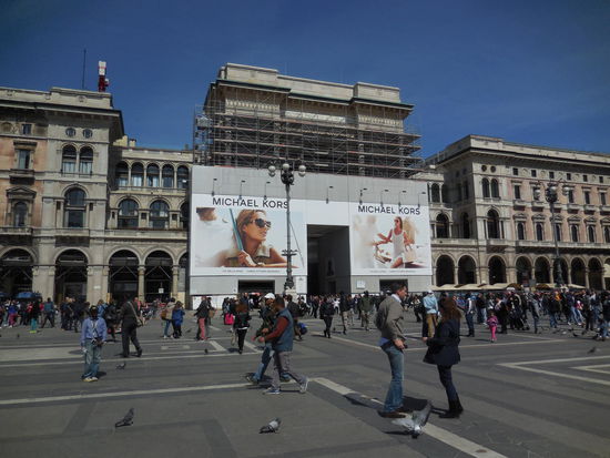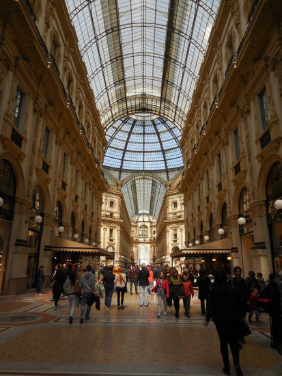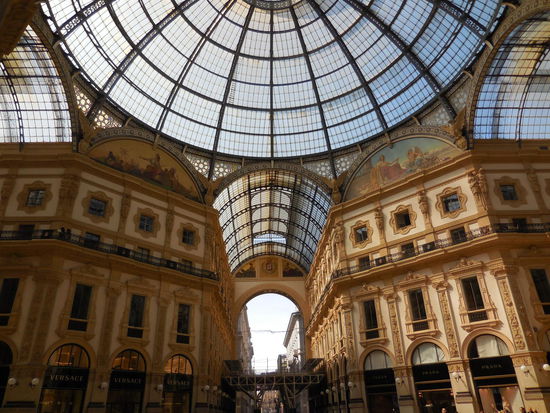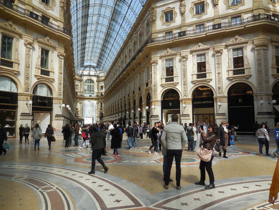 Und gleich hier am Dom unterläuft mir ein brachialer Patzer: Ich gehe heute nicht hinein, weil ich denke, dass dies morgen auf meiner Stadtführung sowieso inbegriffen ist. Ich kaufe auch kein Ticket für das begehbare Dach des Domes, weil zur Zeit beide Aufzüge nicht in Betrieb sind und vor den Treppen endlose Warteschlangen stehen. Zudem habe ich Bammel vor den Treppen, weil die aufgrund meiner Höhenangst für mich ein unüberwindliches Hindernis darstellen könnten. Also lasse ich den Dom heute Dom sein und sehe mich stattdessen gleich mal in den Passagen Vittorio Emanuele II um.