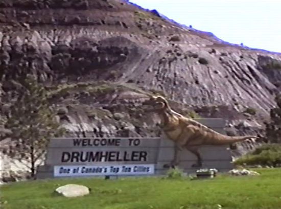 Eine halbe Stunde später müssen wir aufgrund des Morastes die Schuhe putzen, und noch eine halbe Stunde später befinden wir uns auf Motelsuche in Drumheller. Das preiswerte und ein anderes haben bereits 'no vacancy', ein preiswertes will keine Zimmerbesichtigung und macht einschließlich des Alten einen schmuddeligen Eindruck. Daher entschließen wir uns, etwas mehr zu investieren, nämlich 60 C$ + tax pro Zimmer!