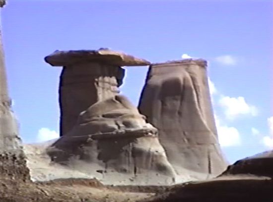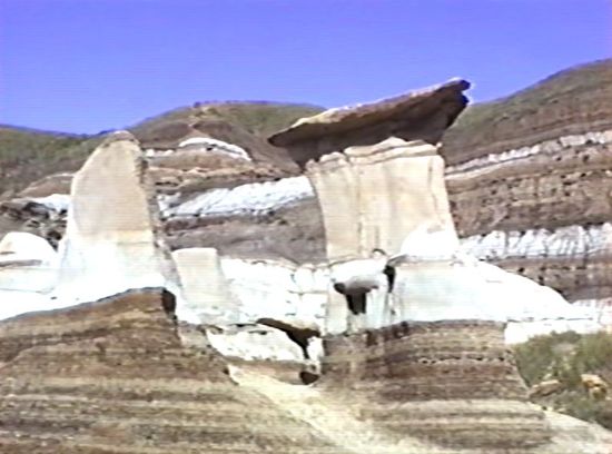 Daher müssen wir die andere Seite des Tales auch mit dem Auto erkunden, denn auch dort gibt es eine Reihe interessanter Punkte wie die Reste von Kohlenminen (Türme, Suspension Bridge, ..) sowie Hoodoos.