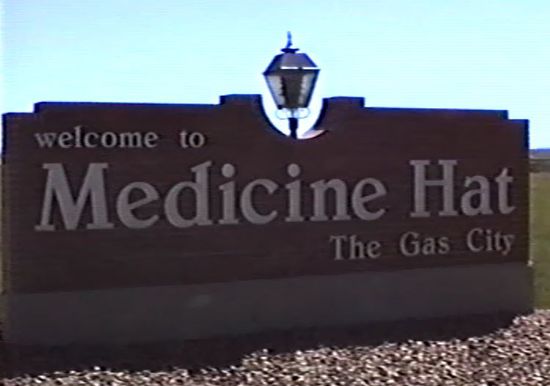 Wieder 100 km weiter erreichen wir gegen 14.30 Uhr Medicine Hat und bekommen zum Ausgleich zu Drumheller nun Motelzimmer für unter 30 C$. Christel möchte sich ausruhen und kramen - sie meint, sie brauche dazu zwei Stunden -, und wir wollen uns nach den Karten fürs Rodeo erkundigen. In den zwei Stunden besuchen wir dann das Visitor Center, der Welt größtes Tepee, das Rodeoareal, den K-Mart (Klamotten kaufen) und den Safeway ( Karten fürs Rodeo).