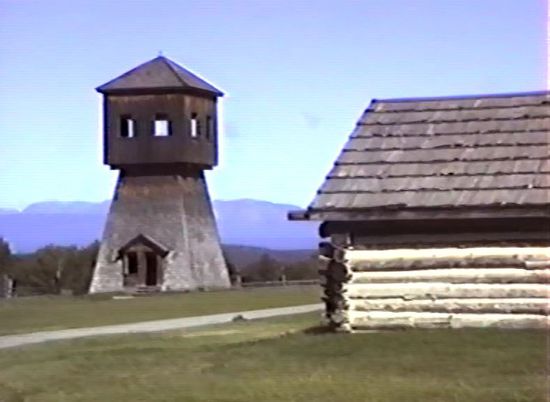 Von unserem Mountain View Motel in Fernie fahren wir ein Stück auf dem Highway 3 zurück, biegen danach auf eine kleinere Straße, um nur kurz mal einen Blick auf Fort Steele zu werfen. Aber wir landen in diesem Modelldorf, das wunderschön liegt. Zuerst machen wir eine Rundfahrt auf dem Pferdewagen, beobachten 'Miß Sophie loading a mule'. Danach machen wir auch zu Fuß einen Rundgang, in der bakery trinken wir unseren obligaten zweiten Kaffee, schauen kurz und vor allem 'sprachlos' in die Schule rein und erhalten in einem Häuschen von einer älteren Dame ein cooky. Mit der Eisenbahn fahren wir nicht, aber ein handgetriebener Karren steht zum Ausprobieren da. So ist es schon nach 12.00 Uhr bei der Weiterfahrt.