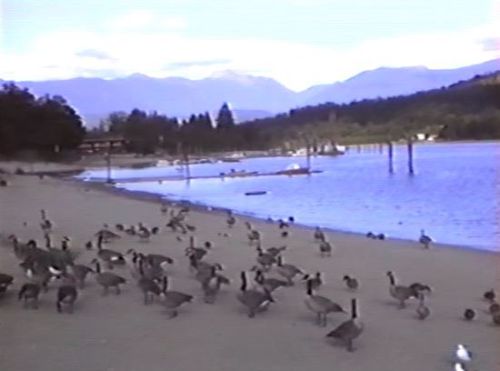 Die Überfahrt erinnert sehr an Norwegen - wie alle Fähren über Binnenseen in B.C. ist auch diese kostenlos. Gegen 17.30 Uhr kommen wir in Balford an, Ulrike füttert die Gänse mit einem alten Brötchen und dann fängt die Zimmersuche an.